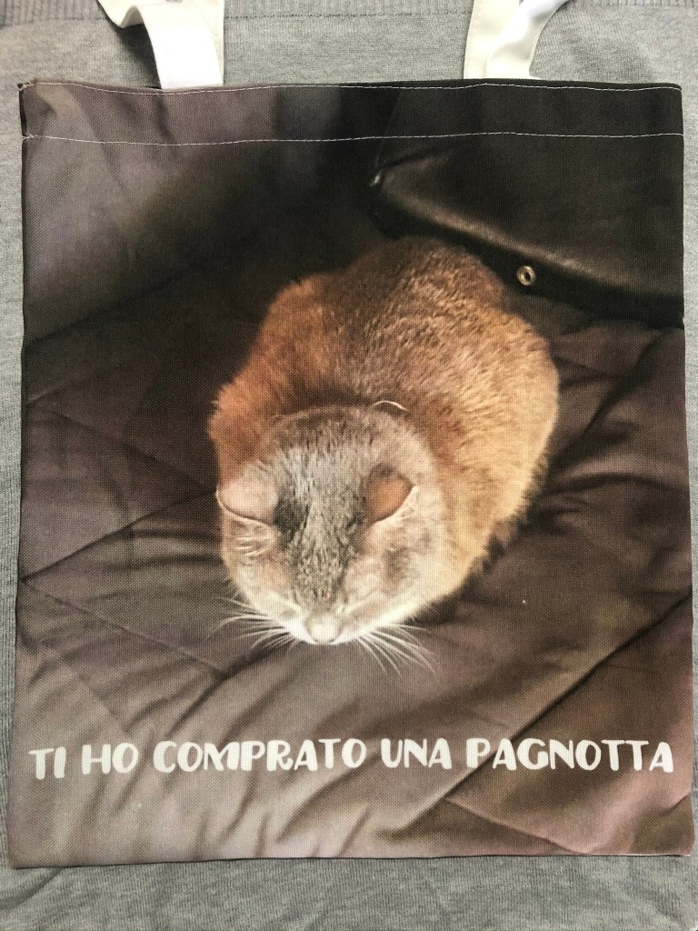 BORSA SHOPPER Manici bianchi Lavabile in lavatrice 41 cm (larghezza) x 43 cm (altezza) capacità: 10 L “Ti ho comprato una pagnotta”