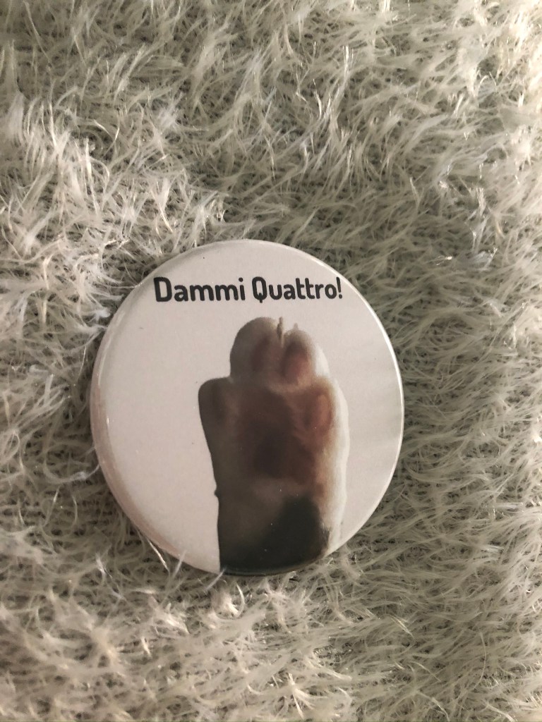 SPILLA MAGNETICA 5,7 cm (larghezza) “Dammi Quattro” SOLO 2 RIMASTE! “Coccolona” SOLD OUT!