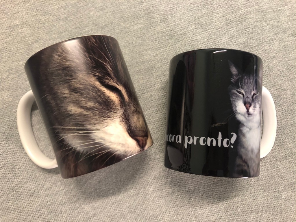 TAZZA IN CERAMICA 8 cm (larghezza) x 9,5 cm (altezza) capacità: 325 ml per lavastoviglie e microonde “Un miao riscalda il cuore” SOLD OUT “Il caffè non è ancora pronto?” SOLO 1 DISPONIBILE